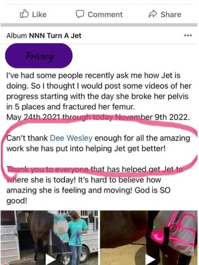 Can't thank Dee Wesley enough for all the amazing work she has put into helping Jet get better!